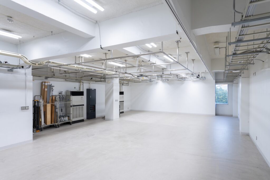 元町中華街校舎3階のメディアスタジオは、授業時には教室、講評時には上映室のように、用途に応じて切り替えて使用できる空間として運用しています。